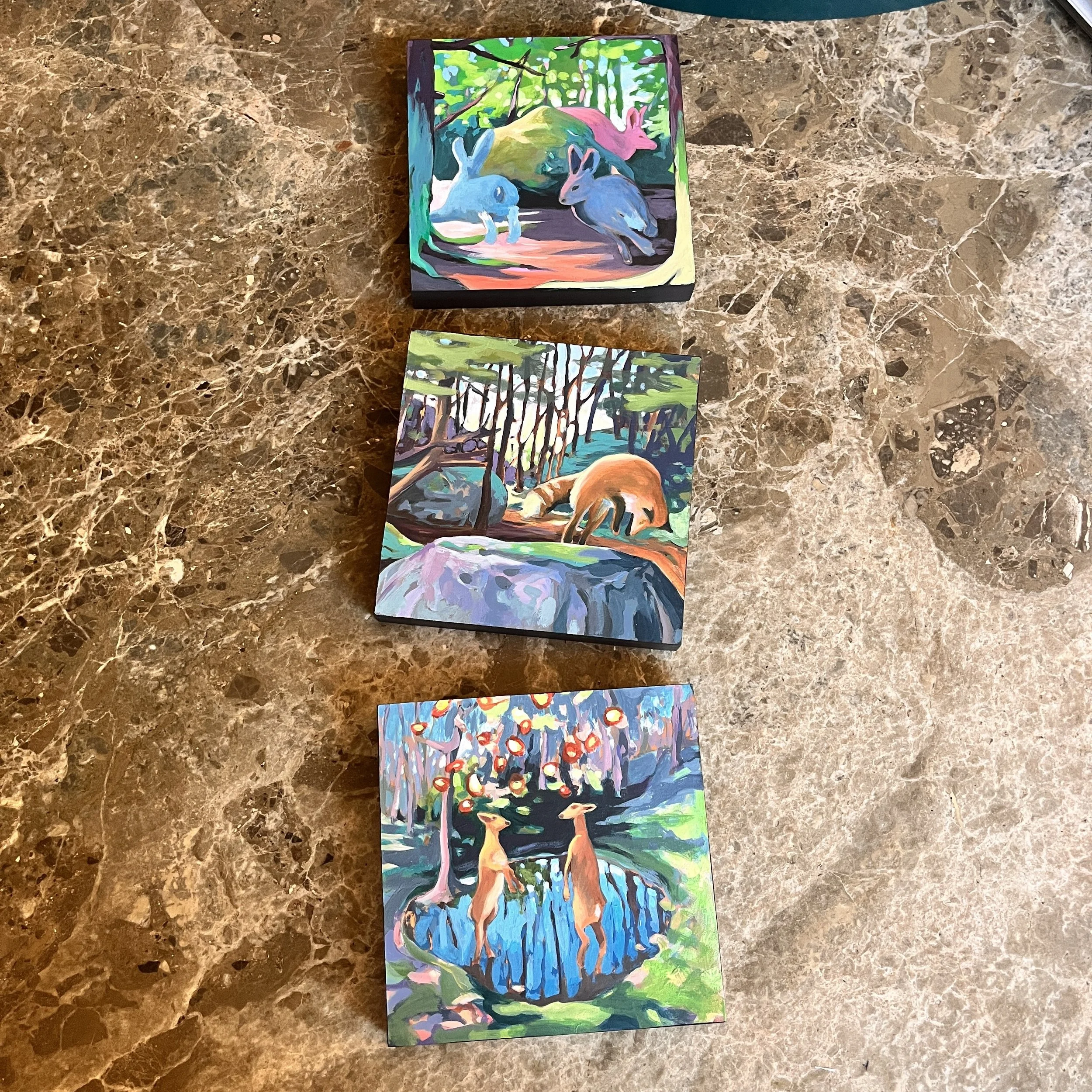 My three 6” x 6” offerings for the December 5 opening of AllSmalls 2025 at The Rock and Art Shop in Bangor, Maine.