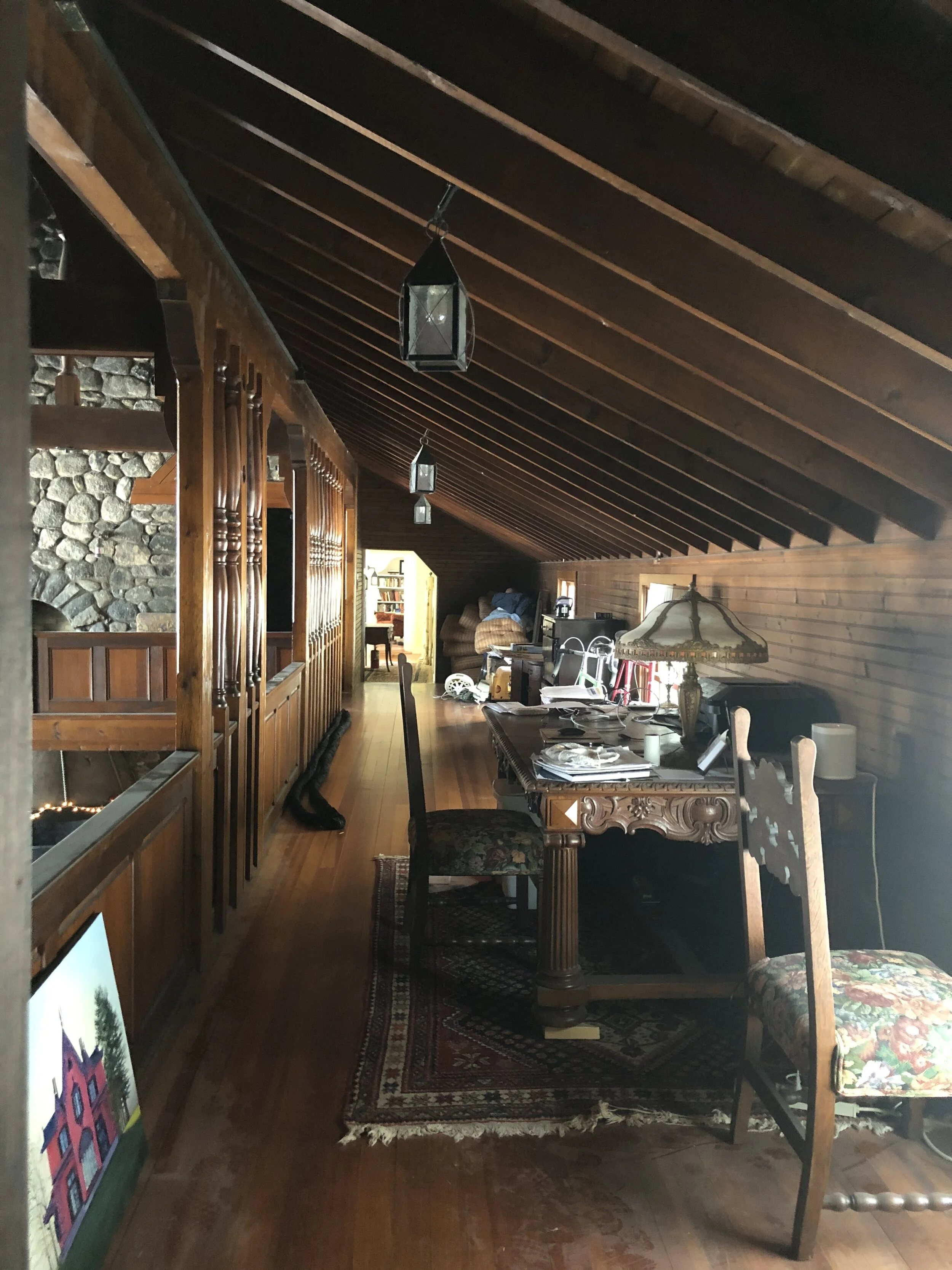 An upper balcony wraps the Main Room and marries the living quarters to the new addition recently completed