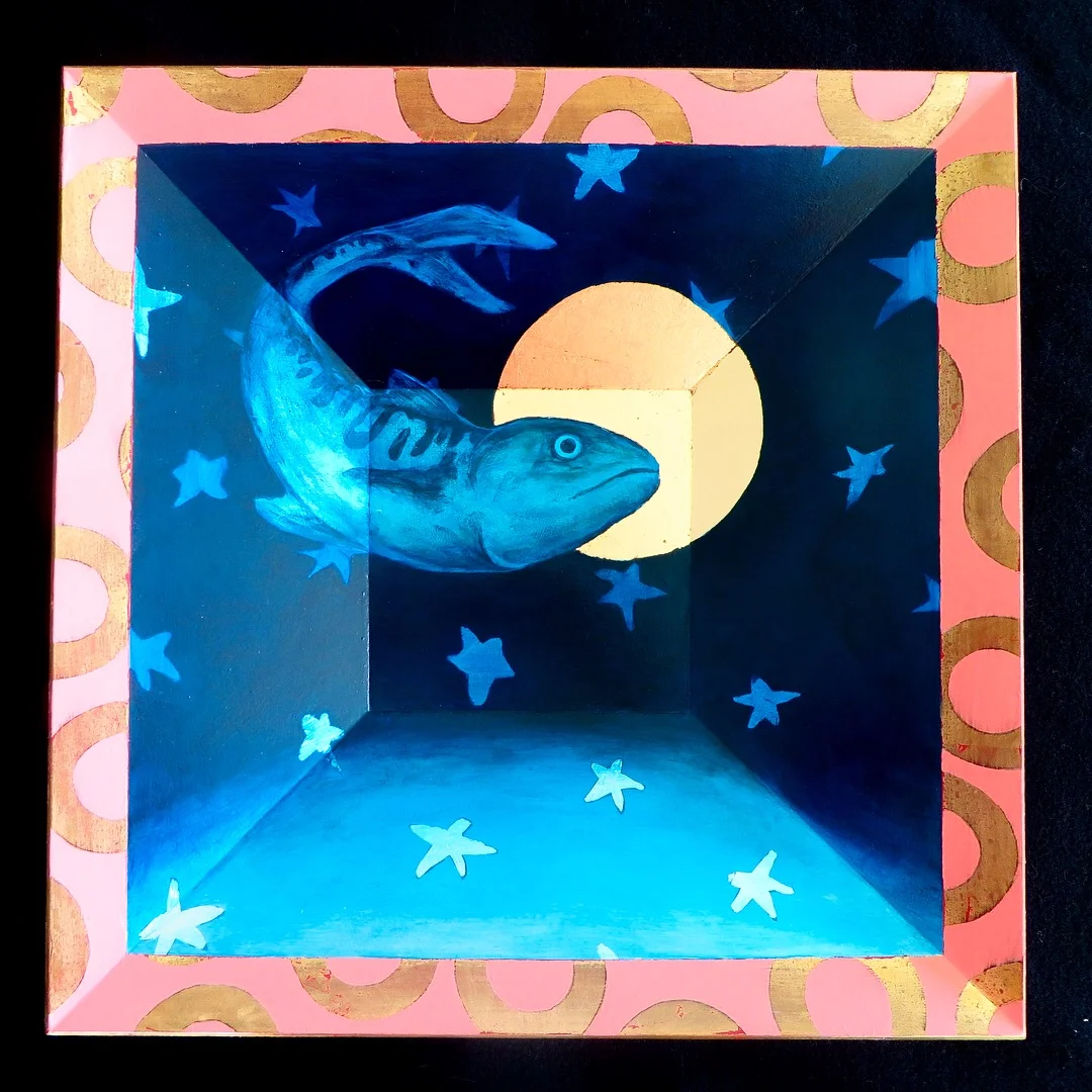 I was honored to have my piece above, Deep- Mackerel with Stars, chosen to be displayed permentantly in the guild.
