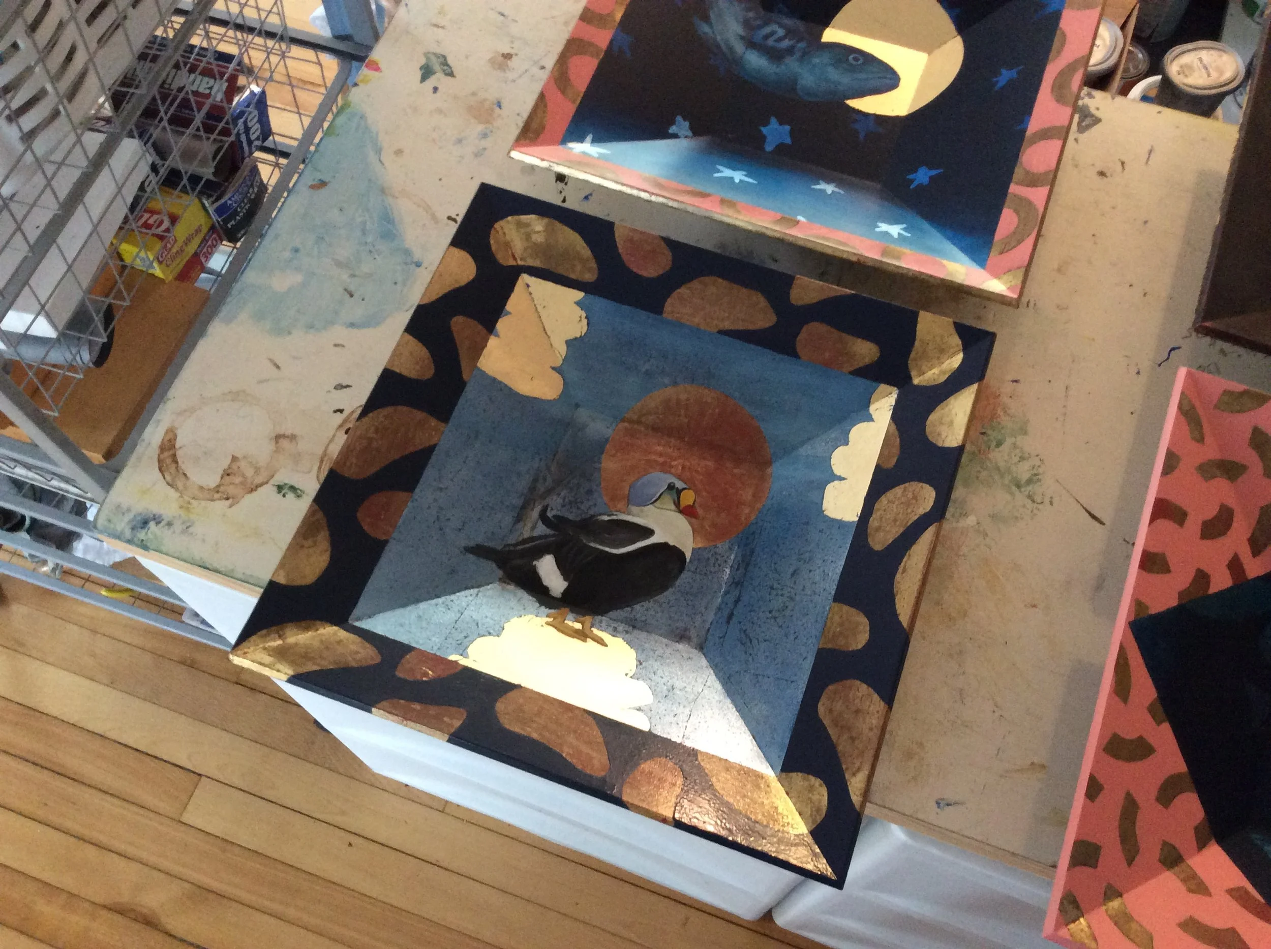 This ongoing and informal collaboration with furniture designer Dan Cramer involves the use of his take on a bowl design that he creates in his Minneapolis Studio as a blank canvas for my musing. I use these “canvases” as a vessel to contain and transport my viusal stories.