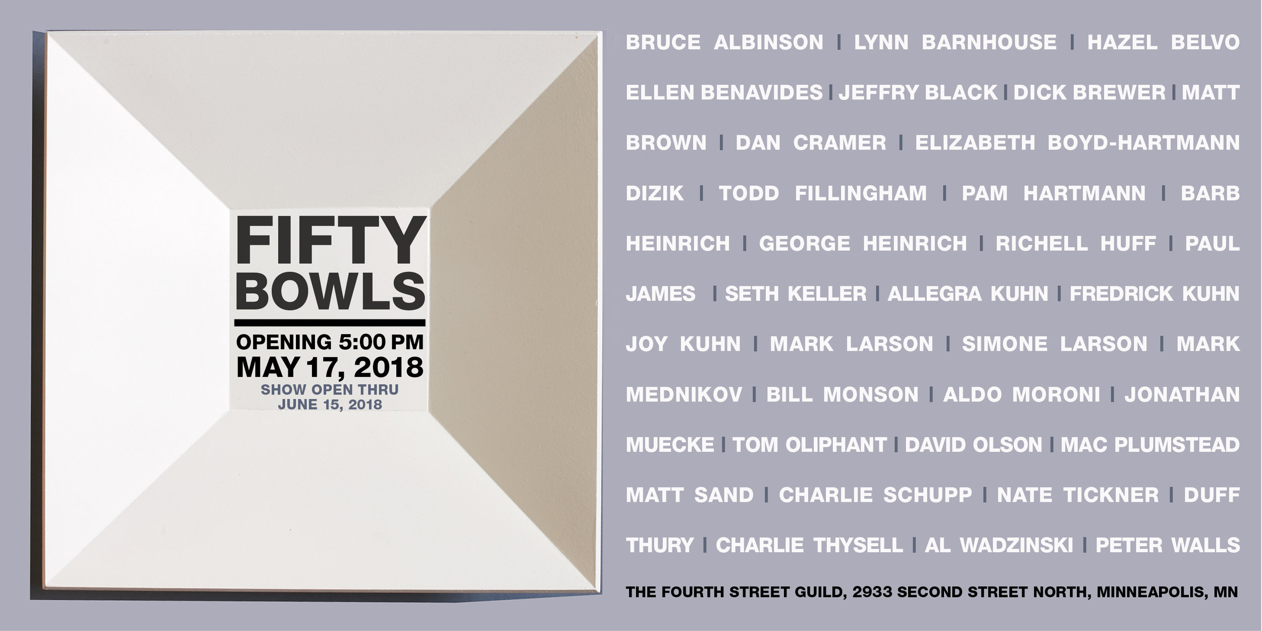 The result so far has been his sending of these bowls to 50+ Artists throughout the United States and abroad and then having a show at The Fourth Street Guild in Minneapolis in the Spring of 2018.